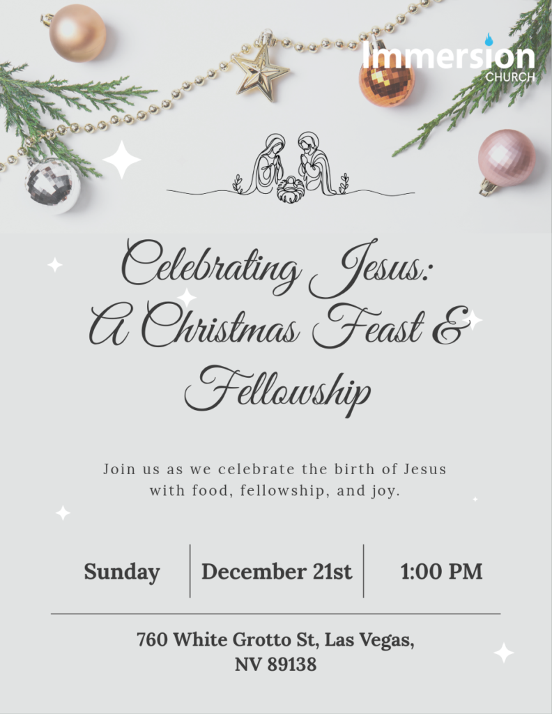Join Immersion Church for our annual Christmas Celebration & Holiday Feast on Sunday, December 21st at 1:00 PM, right after service!